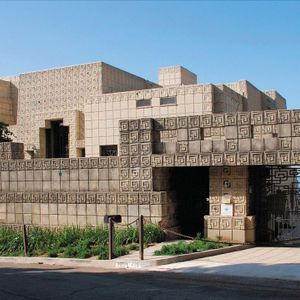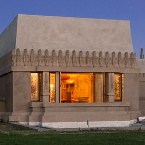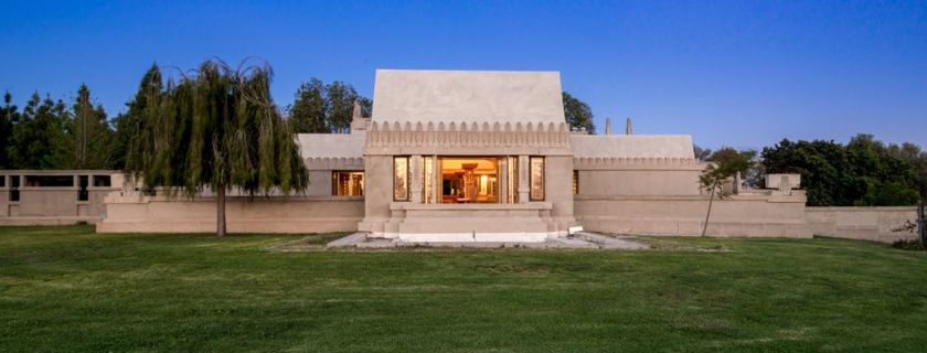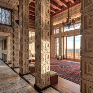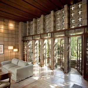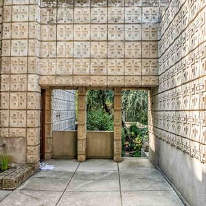 Wright's first textile block house, built for rare book dealer Alice Millard. He called it his favorite of the four. The name "La Miniatura" reflects its jewel-box quality — a small concrete house set in a eucalyptus ravine that achieves monumental presence through the texture and pattern of its blocks. It proved that concrete could be both structural and ornamental, launching the entire textile block experiment. Private residence; visible from the street gate.