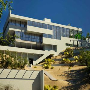 The first steel-frame residential structure in the United States, commissioned by naturopath Philip Lovell. Neutra erected the skeleton in just 40 hours using a prefabricated system inspired by industrial construction. Cantilevered dramatically down a steep hillside, its white volumes and ribbon windows announced the International Style's arrival in America. It put both Neutra and Los Angeles on the global architectural map overnight. Best seen from Dundee Dr below.