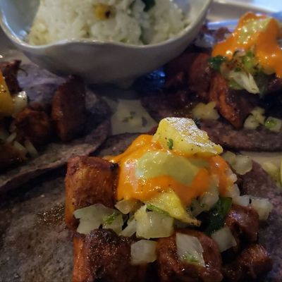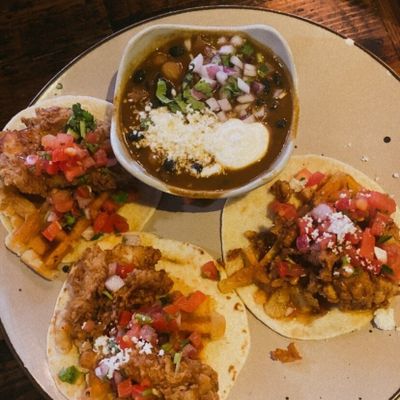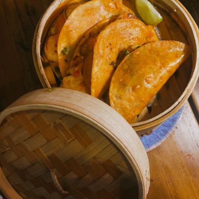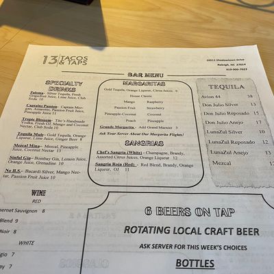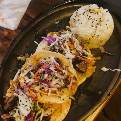 Fusion tacos are the star here, with perhaps one of the most unique taco menus in the Triangle, featuring creative options like seared filet mignon, achiote-marinated chicken, and smoked pork belly.