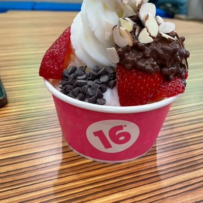 Dessert shop with rotating artisan frozen yogurt, ice cream, and vegan options, plus a massive toppings bar.