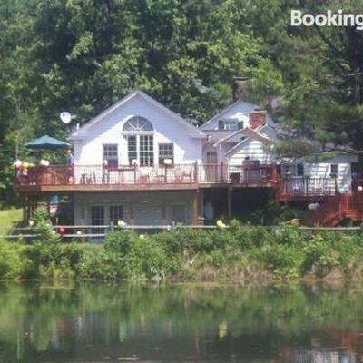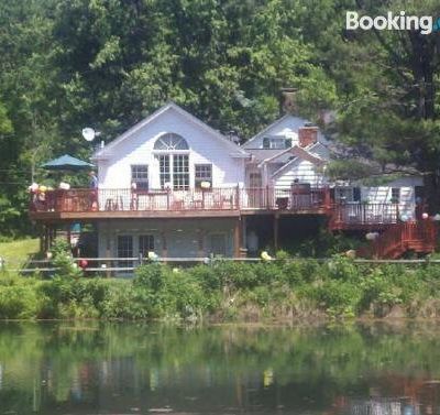 Historic former farmhouse offering a charming and relaxed atmosphere. It features spacious rooms, some with vintage details, and a beautiful setting overlooking a pond.