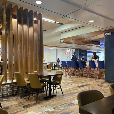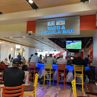 Airport Mexican restaurant with inconsistent reviews; some praise the margaritas and quick service, while others find the food mediocre and overpriced.