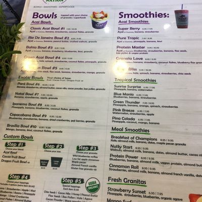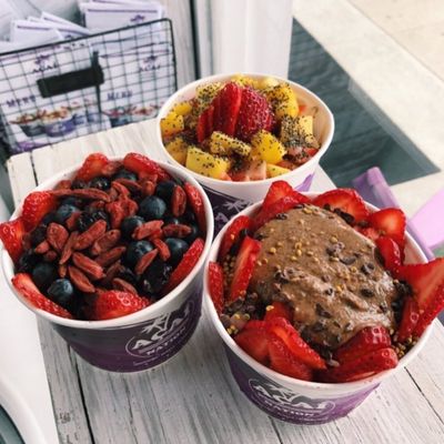 Healthy restaurant offering a large variety of delicious and fresh açaí bowls and smoothies in a clean environment.