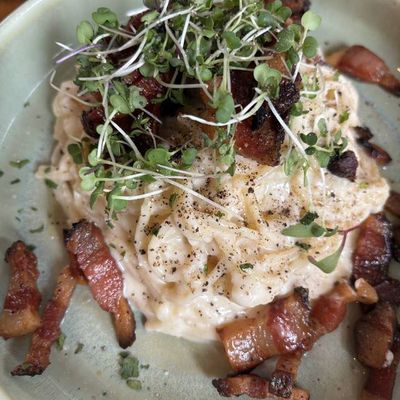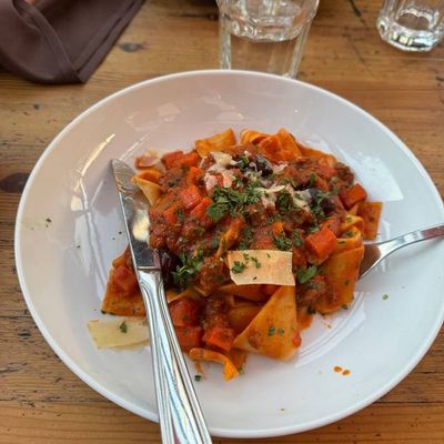 Lively Italian restaurant with a Tuscan-inspired menu, featuring pizza and pasta, in a trendy neighborhood; it offers a vibrant atmosphere and has both indoor and outdoor seating.