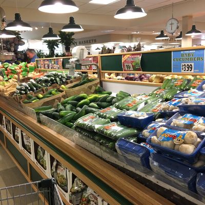 Higher-end gourmet market and prepared foods grocery store offering fresh produce, meats, baked goods, and a deli, with additional features like a florist and landscaping center.