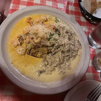 The menu features rich and flavorful dishes like the signature ocean sauce. The cuisine is a unique blend of Creole and Italian influences, with a focus on gourmet, made-to-order ingredients.food_potoo