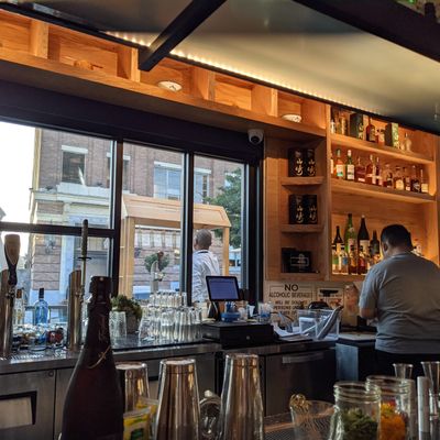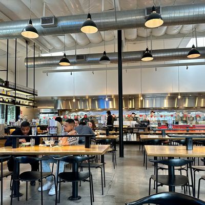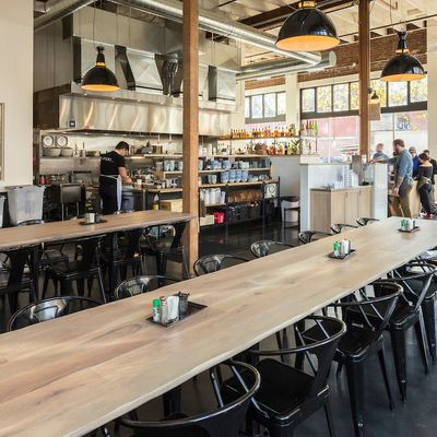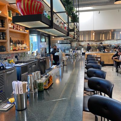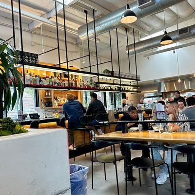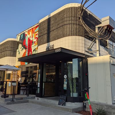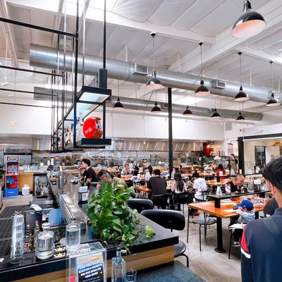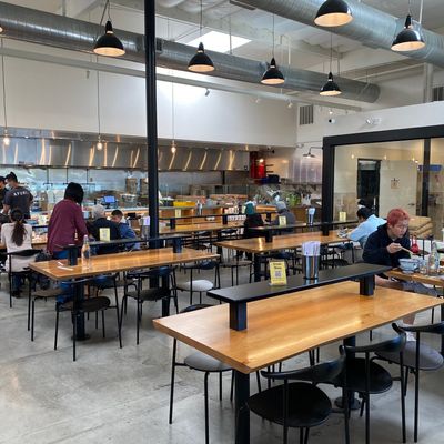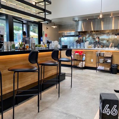 The space features a clean, modern aesthetic that maintains a calm and relaxed atmosphere. It provides a polished setting perfect for a casual meal in the Arts District.ambiance_potoo