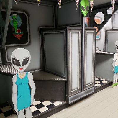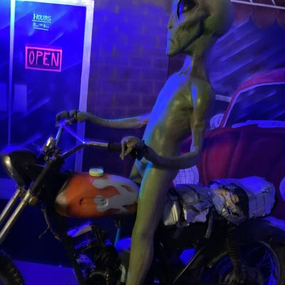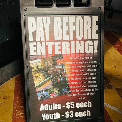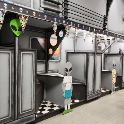 Alien Zone Area 51 offers a unique and affordable entertainment experience focused on alien encounters and photo opportunities. Visitors can engage with various alien props and themed settings for humorous pictures, with a gift shop offering related souvenirs. long_description