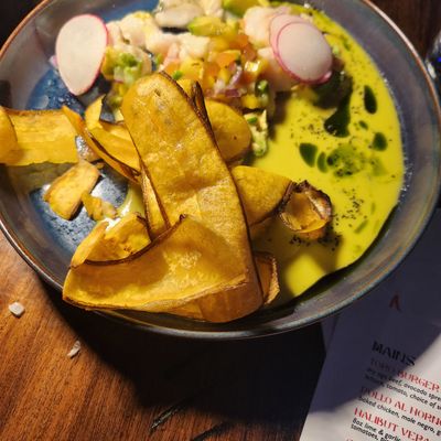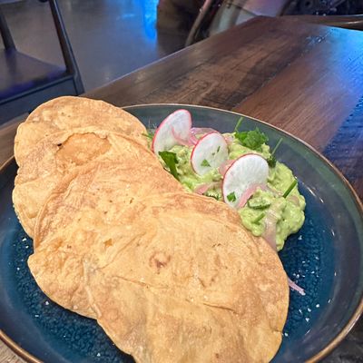 The menu focuses on Spanish-style tapas and small plates like savory empanadas, fresh ceviches, and chorizo with sausage. Don't miss the street corn or the crunchy tortilla rounds served with various dips.food_potoo