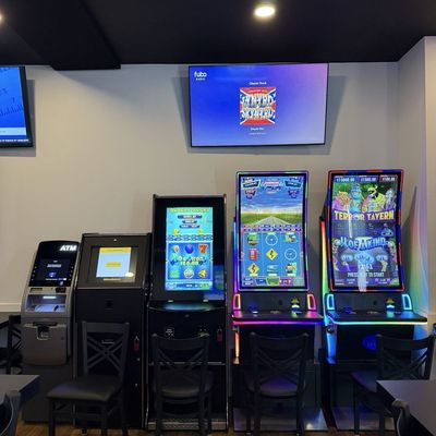 The atmosphere is centered around a friendly bar area with a mix of standard and high-top tables. Multiple TVs are positioned around the room, making it a casual spot for watching games.ambiance_potoo