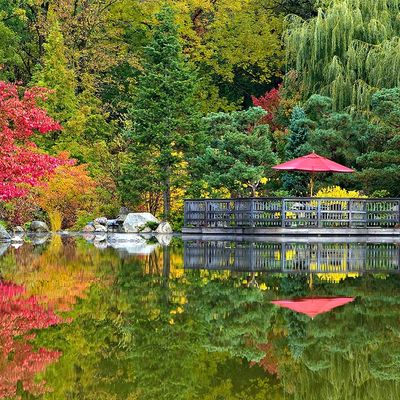 Meticulously designed 12-acre oasis that offers a serene and tranquil experience. This authentic Japanese garden features flowing water, tranquil ponds with koi, diverse trees, and carefully manicured landscapes, creating a visually stunning and peaceful environment.