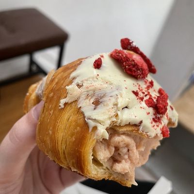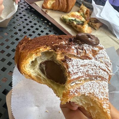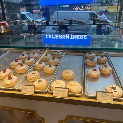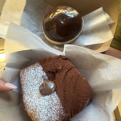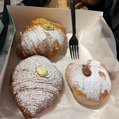 The doughnuts are elegant, giving Italian twists, as in the one filled with pistachio cream and sprinkled with granulated sugar.