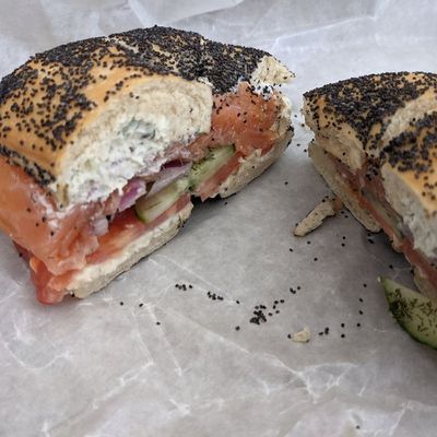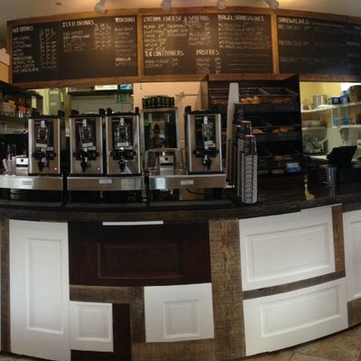 Charming cafe with delicious bagels, sandwiches, and salads, located in a garden center setting, offering both indoor and outdoor seating.