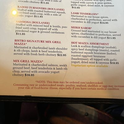 Small chain serving upscale Afghan cuisine in a comfortable setting; it features an extensive wine list and large portions.