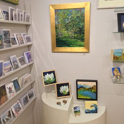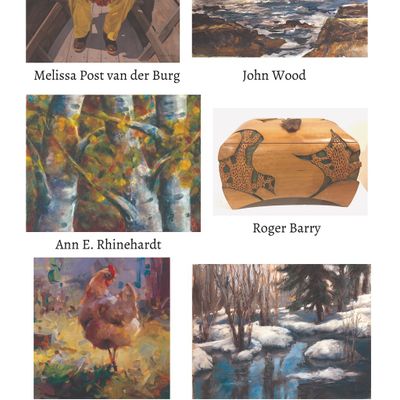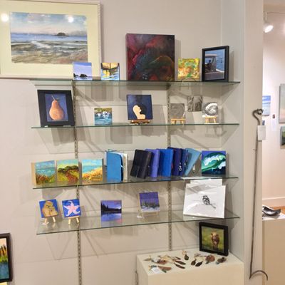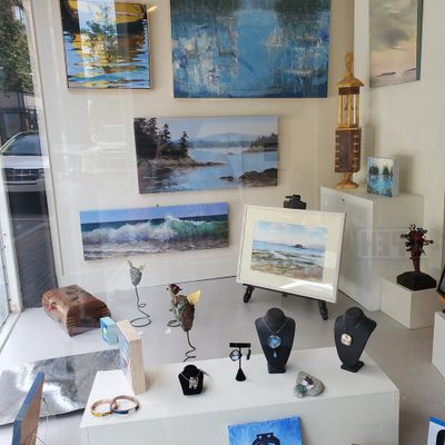 Cooperative showcasing a diverse range of artwork by Maine artists. The gallery features various mediums including paintings, jewelry, photography, and unique carved pieces.