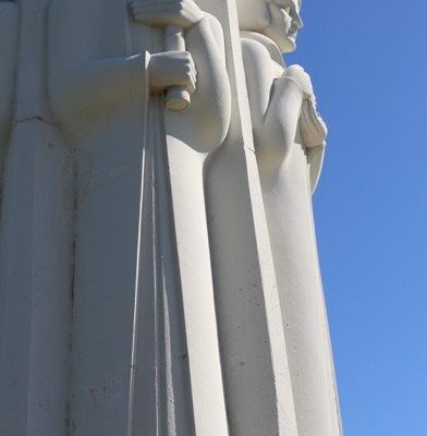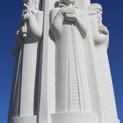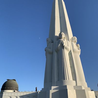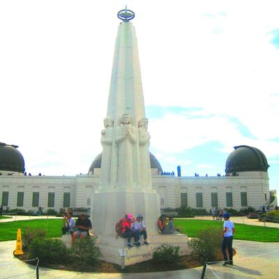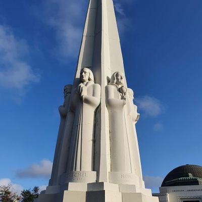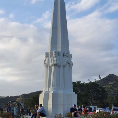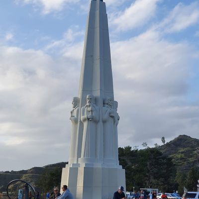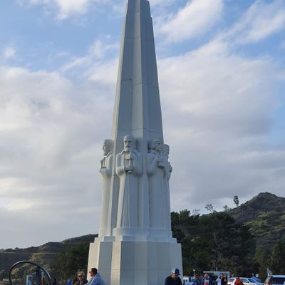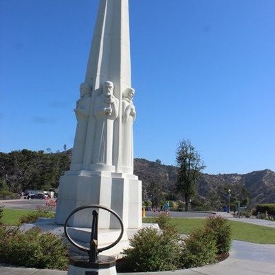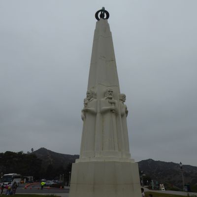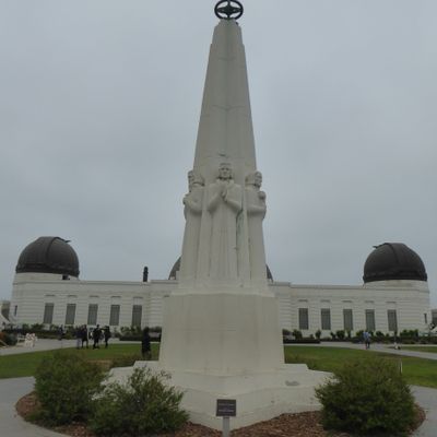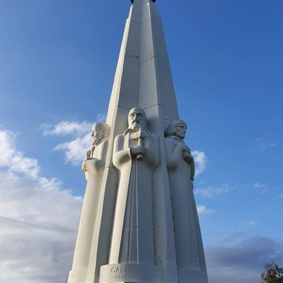 Obelisk located directly in front of the Griffith Observatory. It pays homage to six of the most influential astronomers in history, featuring figures like Copernicus, Galileo, Kepler, and Newton.