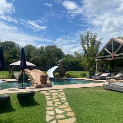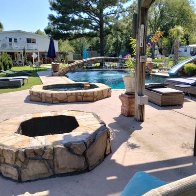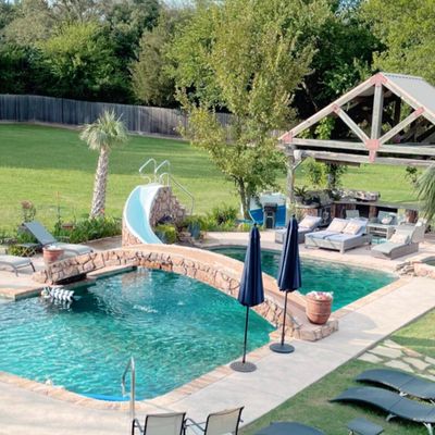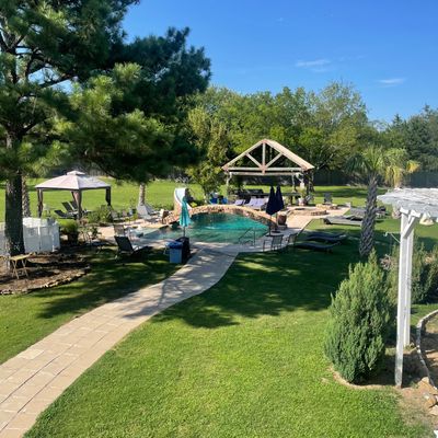 Charming retreat offering a peaceful escape with beautifully decorated accommodations and immaculate grounds. Guests can enjoy amenities such as a pool, hot tub, and covered patios, perfect for relaxation and group activities.