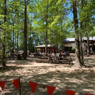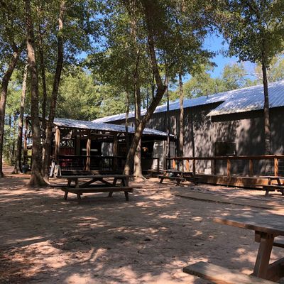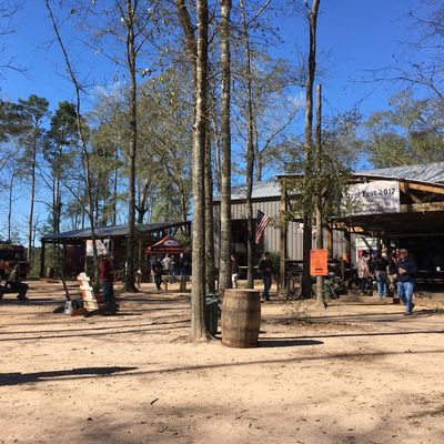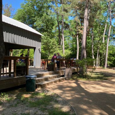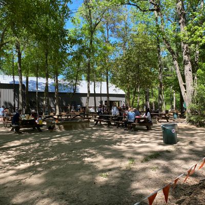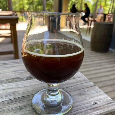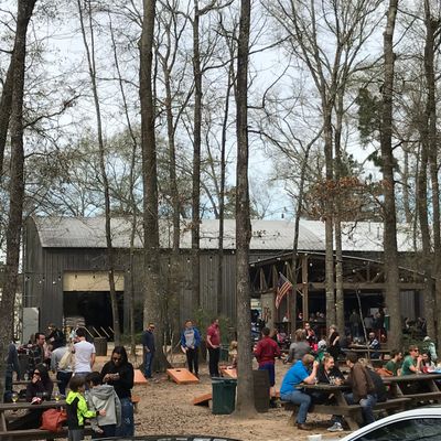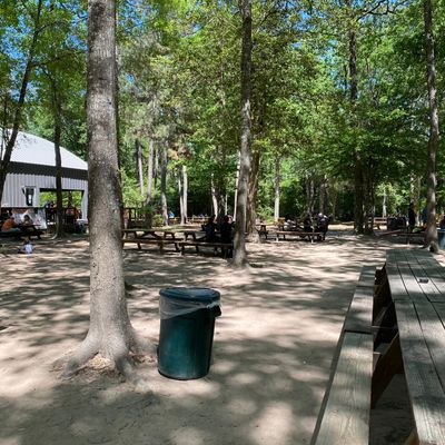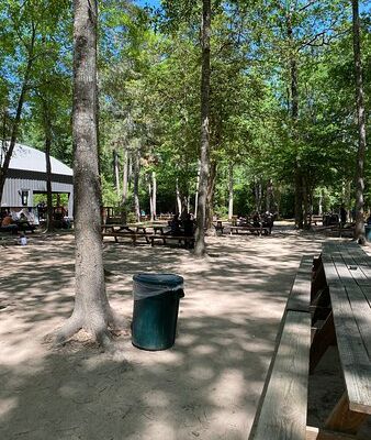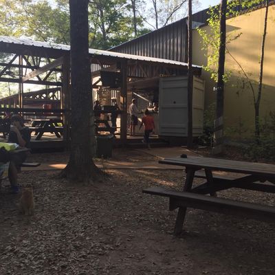 The expansive, three-acre shaded beer garden offers a relaxed outdoor setting, complete with a firepit out front that creates a cozy atmosphere during cooler weather. A friendly resident cat often wanders through the space, adding a touch of charm to the casual environment.ambiance_potoo