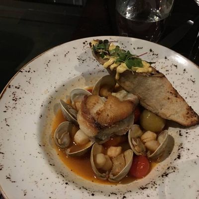 Modern brasserie in a historic building, offering American cuisine with seafood and vegetarian options, known for its cocktails and sometimes inconsistent service.