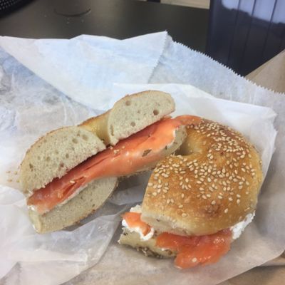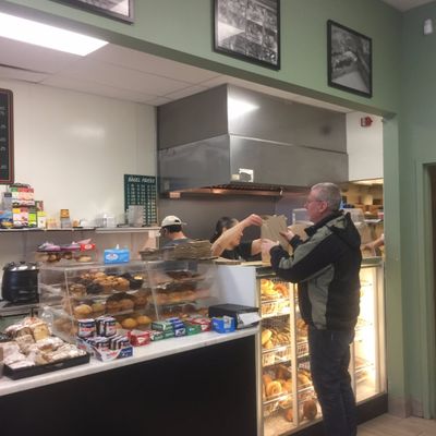Popular local bagel shop offering fresh bagels, breakfast and cold cut sandwiches, with efficient service and a busy takeout atmosphere.