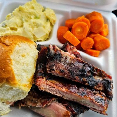 The tender, fall-off-the-bone ribs are a standout, paired perfectly with jalapeño cheddar cornbread muffins. You can also enjoy hearty plates featuring savory BBQ beans and fresh, tasty flavors.food_potoo