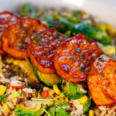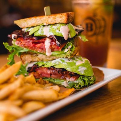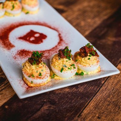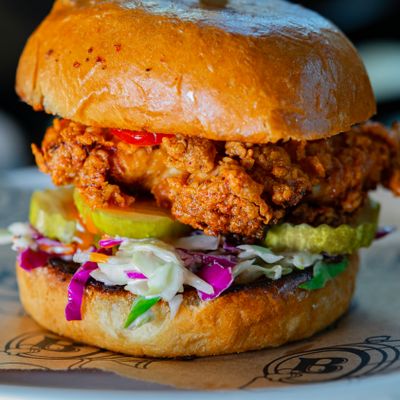 Indulge in the crispy fried chicken served with two eggs, crumbled bacon, and creamy grits. The rich, comforting flavors of the scratch-cooked dishes make every bite satisfying.food_potoo