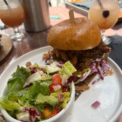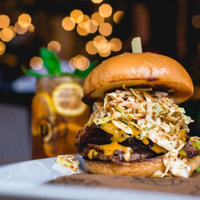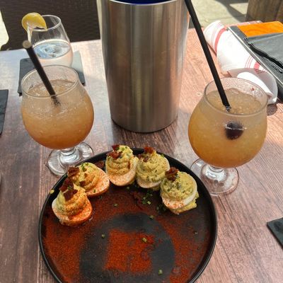 The atmosphere is relaxed and inviting, offering a modern take on Southern hospitality. Outdoor seating provides an ideal setting for enjoying a meal in a comfortable, casual environment.ambiance_potoo