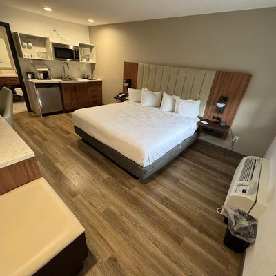 Hotel offering a comfortable stay with well-maintained rooms and helpful staff. Many rooms feature kitchenettes with full-sized refrigerators, making them suitable for extended stays.