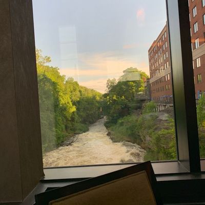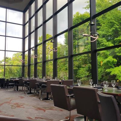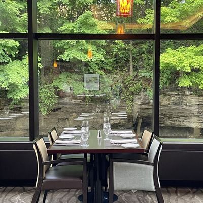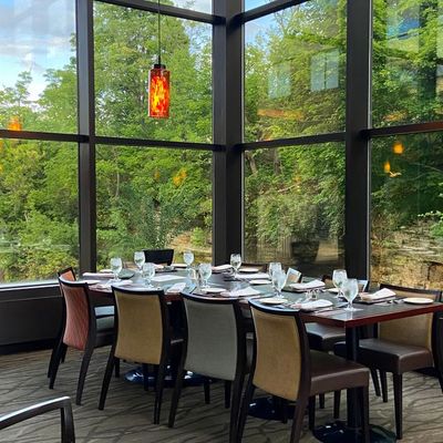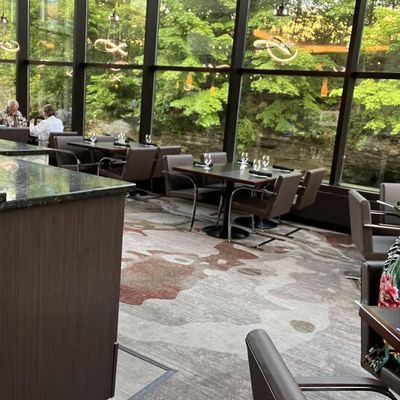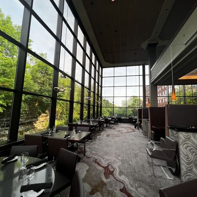 Sheraton hotel restaurant with river views, offering American contemporary cuisine and a casual atmosphere.