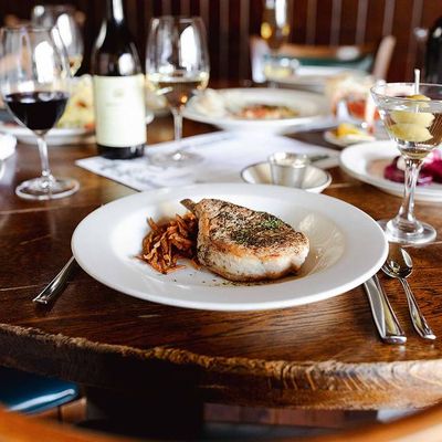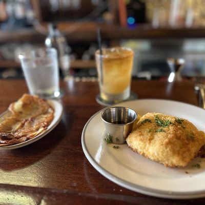 The atmosphere is sophisticated and elegant, providing a relaxing setting for a meal. It feels like a classic, historic tavern where the environment is curated for a polished dining experience.ambiance_potoo