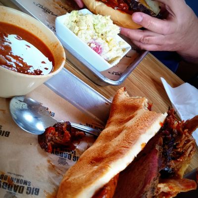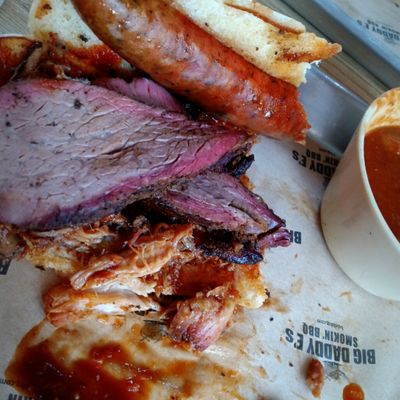 Casual barbecue restaurant offering generous portions of smoked meats, including ribs, brisket, and tri-tip, with a variety of homemade sauces and sides.