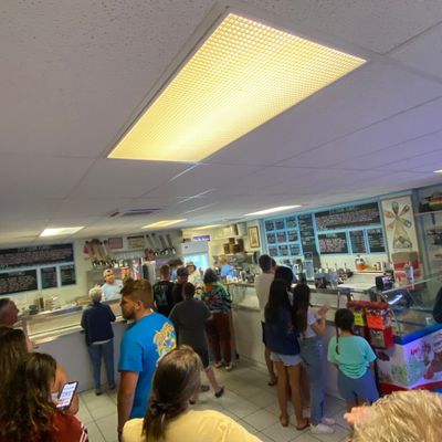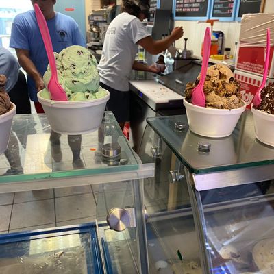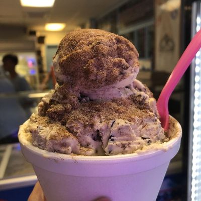 Popular Surf City ice cream shop known for its generous portions, quick service, and delicious homemade ice cream with many flavor options and sundaes.