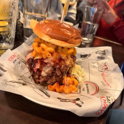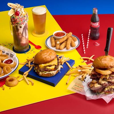 Try one of their big, bustling burgers, or the disco fries with gravy and cheese. Don't forget an alcoholic shake to go with it.food