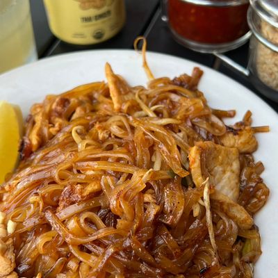 Thai restaurant with a lively atmosphere offering creative fusion dishes and generous portions.