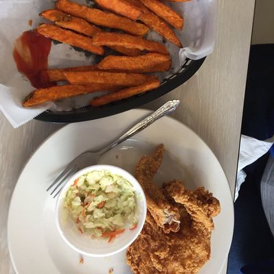 Casual American restaurant known for its fried chicken, offering takeout and dine-in options with a mix of classic and unique dishes like potato bowls.