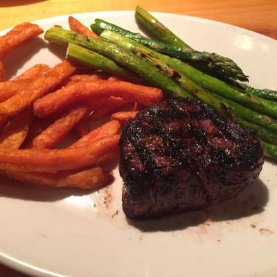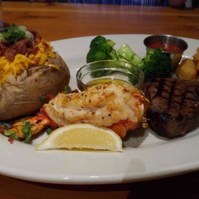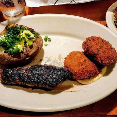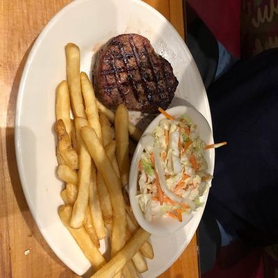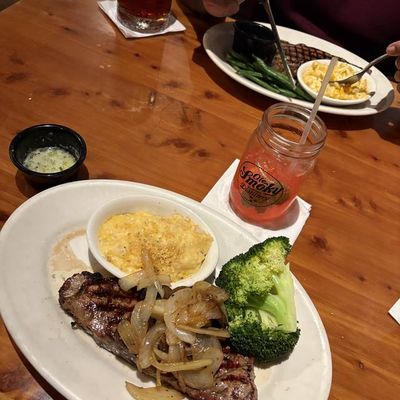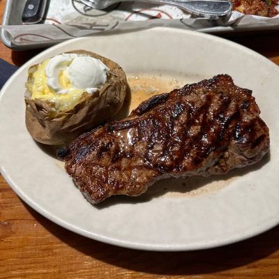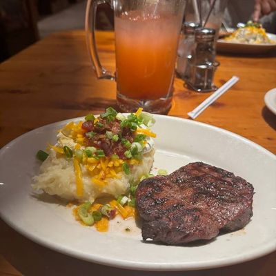 Order a steak cooked to your preferred temperature, paired with creamy mashed potatoes. The menu focuses on reliable American steakhouse staples.food_potoo