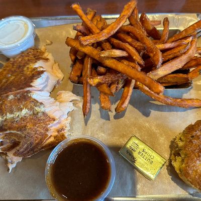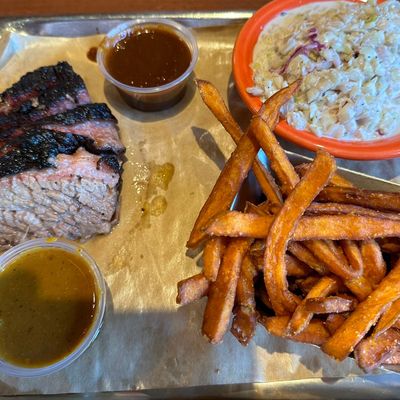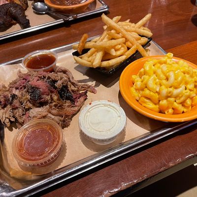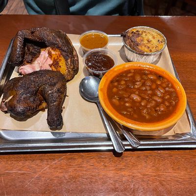 Moderately priced barbecue restaurant in a restored train station, offering American fare, smoked meats, and a good beer selection with mixed reviews on side dishes.