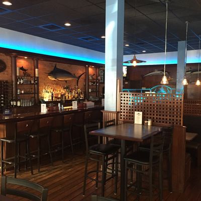 Enjoy fresh-catch seafood and American fare, such as the wahoo pate. The cocktail program is a standout, featuring creative options like the basil rosemary lemon drop martini.food_potoo