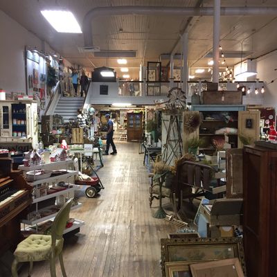 Multi-level destination offering a diverse collection of new, vintage, and antique items. Shoppers can explore a wide array of goods, from home decor and furniture to clothing and jewelry, curated by various vendors.