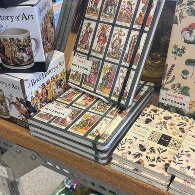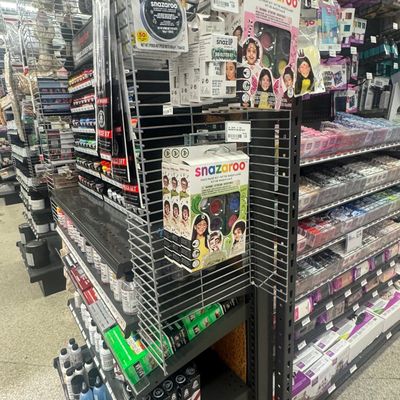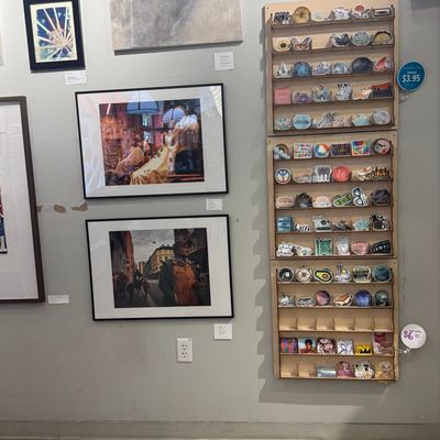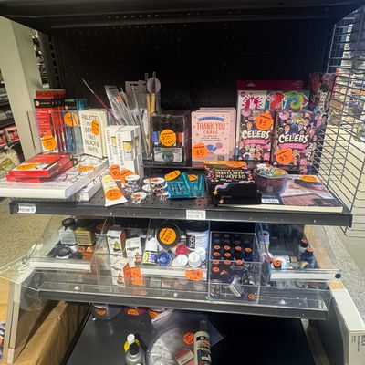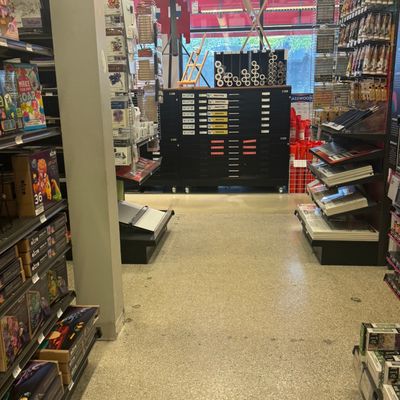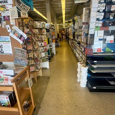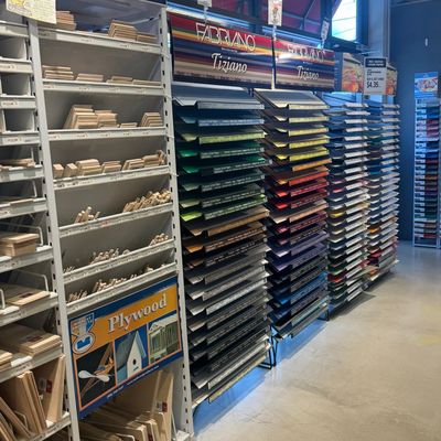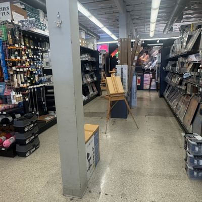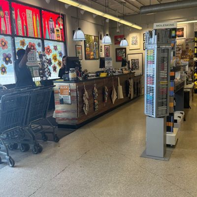 Comprehensive art supply store offering a wide variety of materials for painting, fiber crafts, wood projects, scrapbooking, and more. The store features a welcoming atmosphere with creative gift and card sections, including unique items like matchbox puzzles.