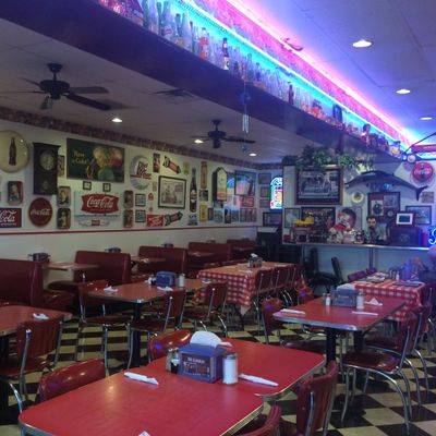 Classic American diner with a 50s vibe, serving comfort food like burgers and fried green tomatoes, along with some unique specials; it has inconsistent service and some reported issues with accuracy and billing.