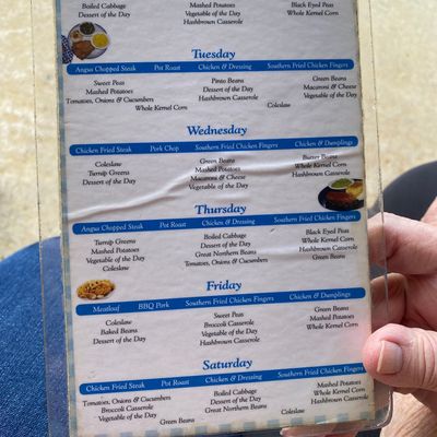 Local diner offering generous portions of classic Southern comfort food, with a focus on fresh vegetables and meat dishes, creating a homey atmosphere.