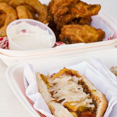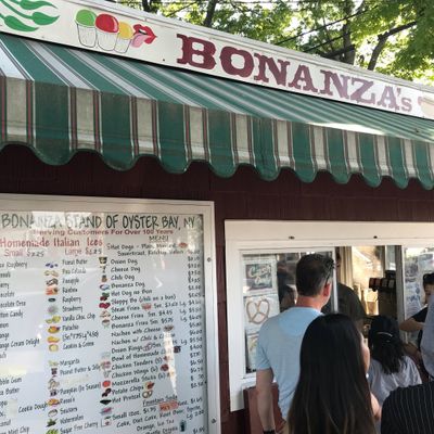 Historic Oyster Bay landmark offering classic hot dogs, homemade Italian ices, and steak fries in a casual refreshment stand setting.