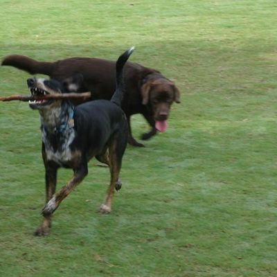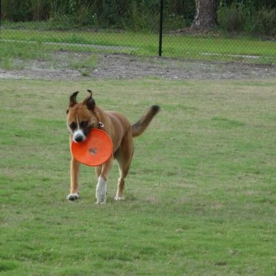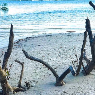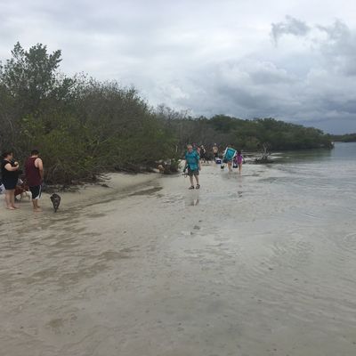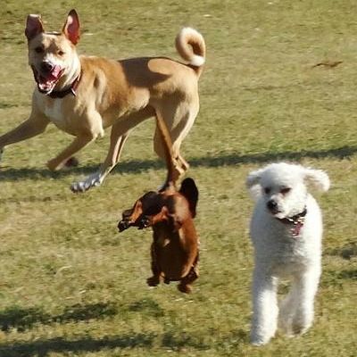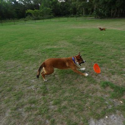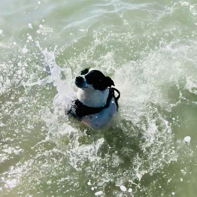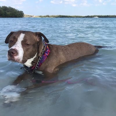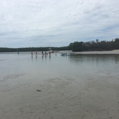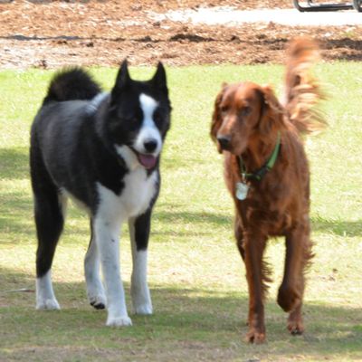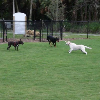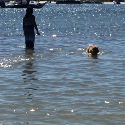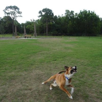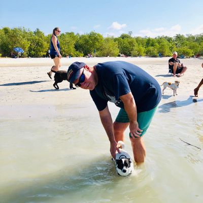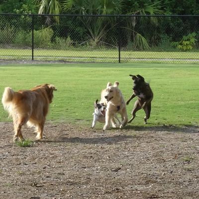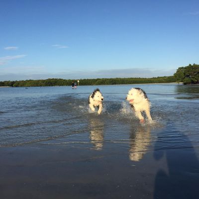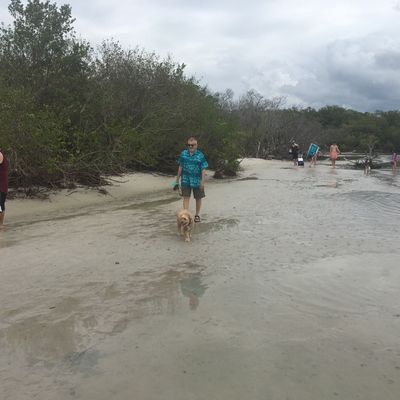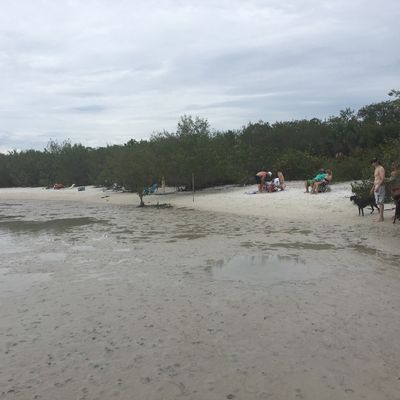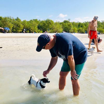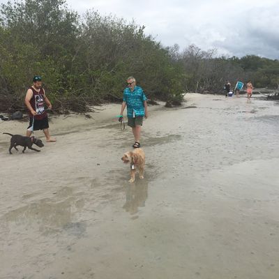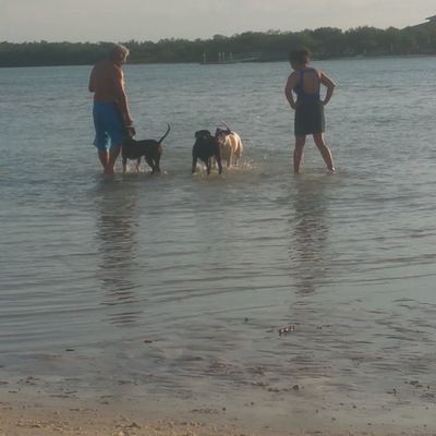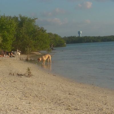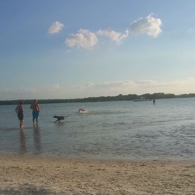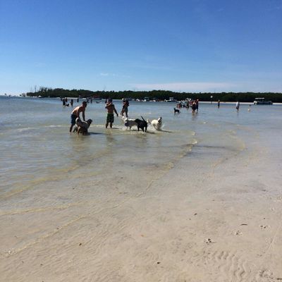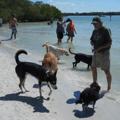 Beach area designated for dogs to play off-leash. The park offers a shallow water environment suitable for dogs to splash and run.