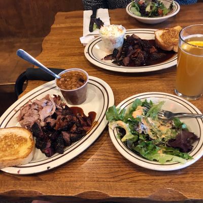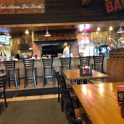 Local barbecue joint offering affordable American fare, including burgers and sides; some find the meat dry.