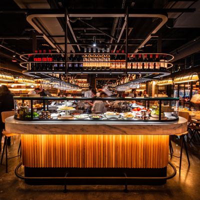 The atmosphere is lively and high-energy, mirroring a modern-day Barcelona social scene. The space feels contemporary and bright, making it an ideal spot for a spirited social gathering.ambiance_potoo
