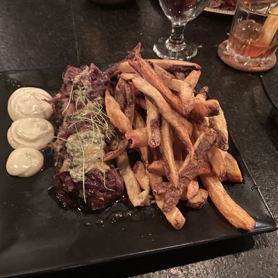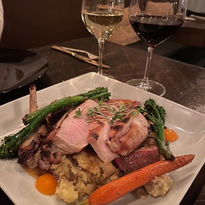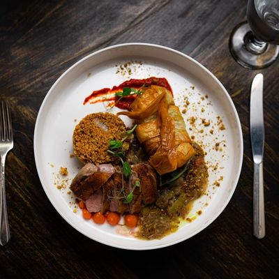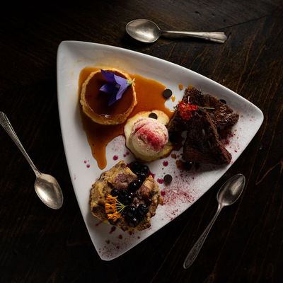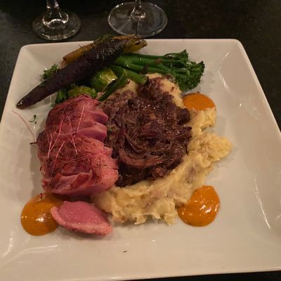 The menu features chef-driven cuisine including duck and a selection of cocktails and wine. The desserts are a notable highlight for those looking to end their meal on a sweet note.food_potoo