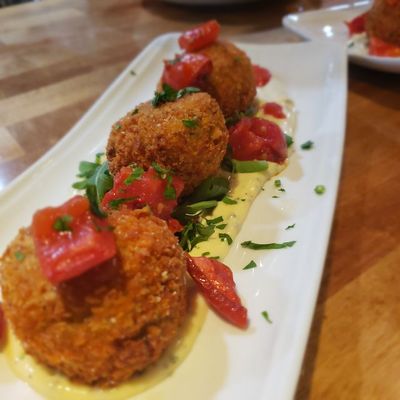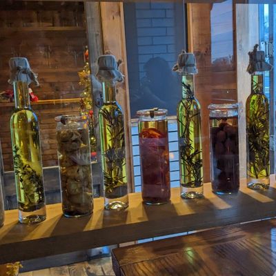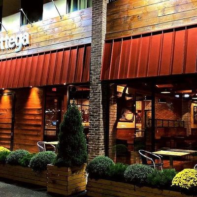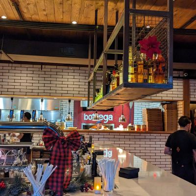 Modern Italian restaurant with a rustic feel, offering pizza, pasta, and other Italian-American dishes in a cozy, indoor/outdoor setting.