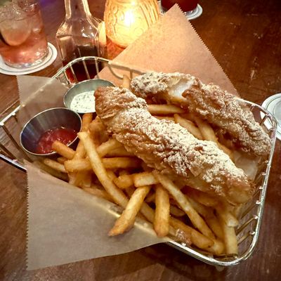 Classic American pub with a rotating liquor shelf, upscale cocktails, and excellent food including fish and chips and Nashville hot chicken.