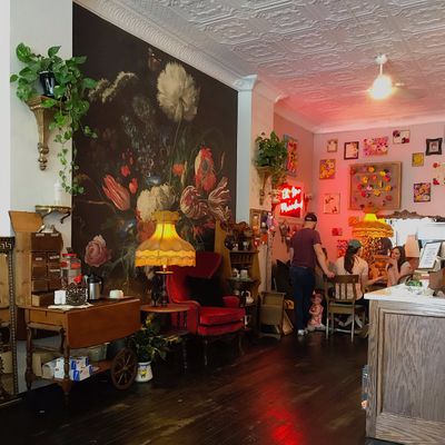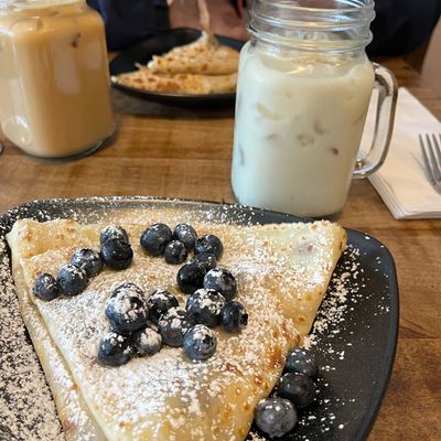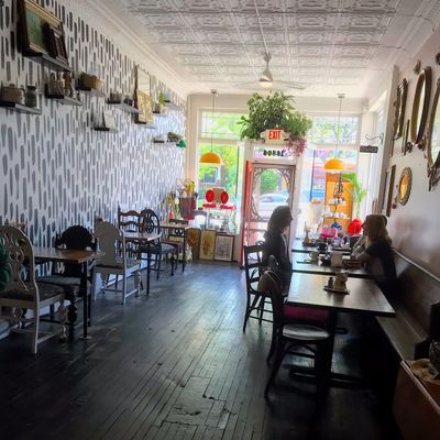 Charming cafe with unique antique decor, offering delicious sweet and savory crepes, specialty coffee drinks, and a limited menu.